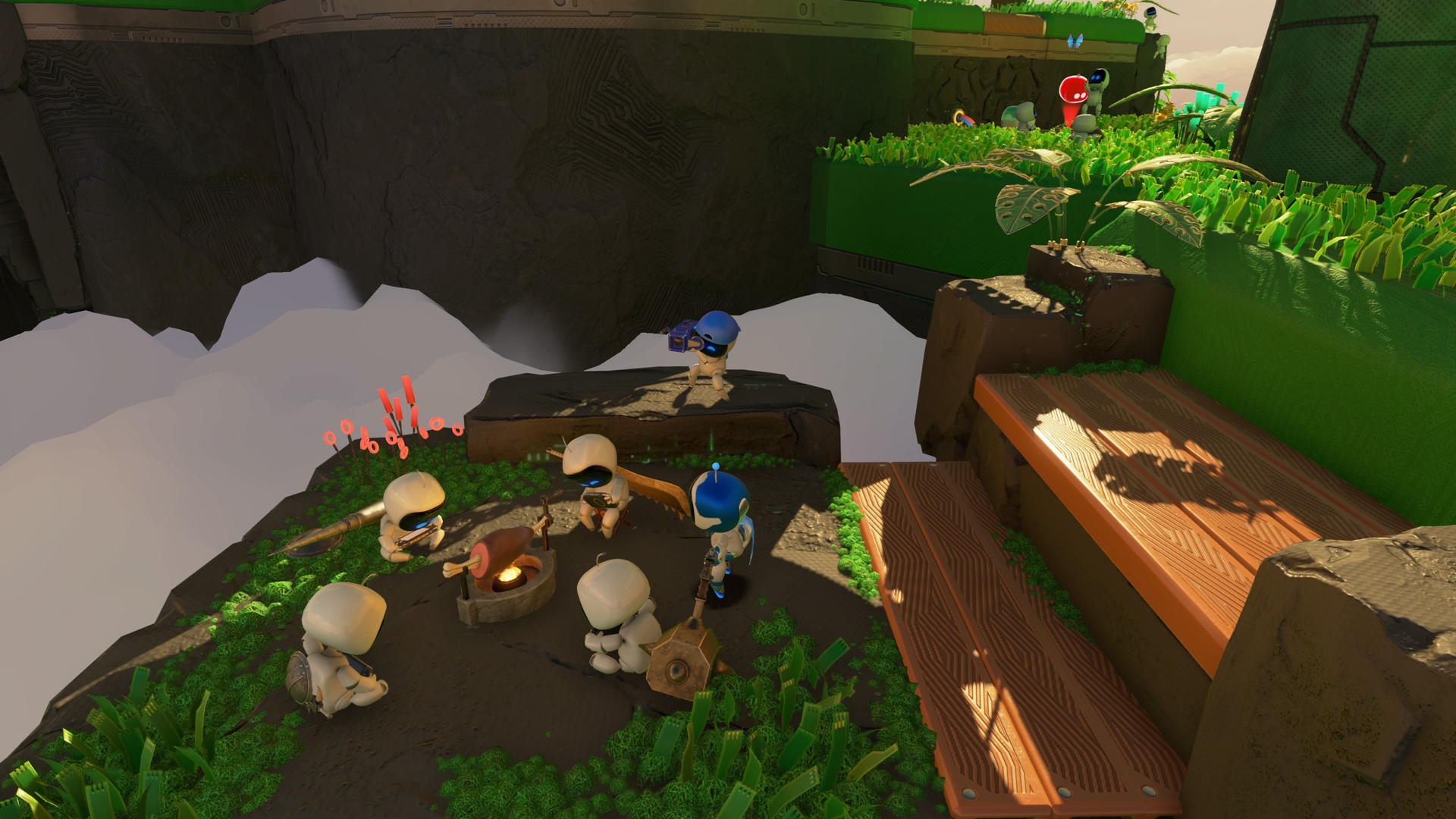 ถึงแม้จะเป็นเกมฟรีและวิธีการเล่นเรียบง่ายไม่ซับซ้อน แต่การออกแบบฉากต่าง ๆ รวมถึงสิ่งที่ซุกซ่อนให้ได้ค้นหานั้นมีดีไม่เบาเลยครับ แน่นอนล่ะ ในทีแรกสุดคุณอาจรู้สึกว่าระบบของเกมมันง่ายจนเกินไปด้วยความที่มีปุ่มโจมตี มีกระโดด แล้วก็ดูจะไม่มีอะไรเกินไปกว่านั้น แต่ว่าพระเอกตัวจริงของเกมนี้คือ “การโชว์ฟังก์ชันจอย DualSense” นั่นเองครับ ตลอดทั้งเกมคุณจะได้สัมผัสกับทุกฟังก์ชันของจอยอย่างครบถ้วนไม่มีตกหล่น ระบบสั่นที่สุดแสนละเอียด สั่นหนักเบาตามพื้นผิวที่เราเหยียบ หรือหากเรายืนใต้สายฝนจอยก็จะสั่นเบา ๆ เป็นจุด ๆ ทั่วทั้งจอย และเมื่อไหร่ที่คุณหยิบธนูปุ่ม L2/R2 ก็จะมีแรงต้านในการกดเสมือนเวลากำลังง้างสาย เมื่อพบเจอกับใบพัดคุณก็ต้องเป่าลมใส่ไมค์ของจอยเพื่อให้ใบพัดหมุนทำงาน หรือหากคุณกระโดดเข้าไปในชุดลิง เมื่อปีนป่ายก็จะต้องเอียงจอยตามเสมือนกำลังเหวี่ยงตัวไปจับแง่งหิน ทั้งหมดทั้งมวลนี้รวมกันแล้วบอกได้เลยว่าสร้างความประทับใจได้มากเลยทีเดียว