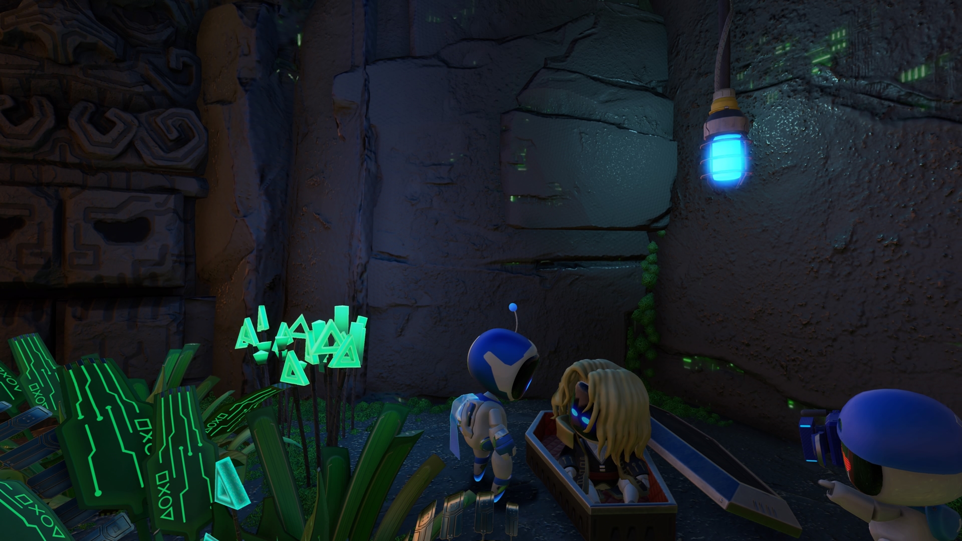 อันที่จริง ผมเองประทับใจเพลงประกอบของซีรีส์นี้มาตั้งแต่คราวที่ได้เล่น Astrobot: Rescue Mission บน PSVR แล้วครับ ท่วงทำนองของเกมนั้นสนุกสนานครึกครื้นในแบบฉบับดนตรีเทคโน เสียงคนร้องก็จะถูกสังเคราะห์ออกมาจนคล้ายเป็นเสียงเครื่องจักร ซึ่งก็เข้ากับธีมของตัวละครต่าง ๆ ในเกมที่เป็นหุ่นกันหมดดีไม่หยอก ที่สำคัญคือเพลงแต่ละเพลงนั้นมีเนื้อร้องที่สอดคล้องกับฟังก์ชันการทำงานของเครื่องทั้งนั้นเลยครับ อย่างในป่า GPU ก็จะมีเนื้อร้องทำนองว่า “I’m your GPU. GPU. Tell me what to do.” หรือในฉากทางด่วน SSD ก็จะเน้นดนตรีพร้อมกับมีเสียงคนร้องคลอเป็นบางจังหวะว่า “SSD”