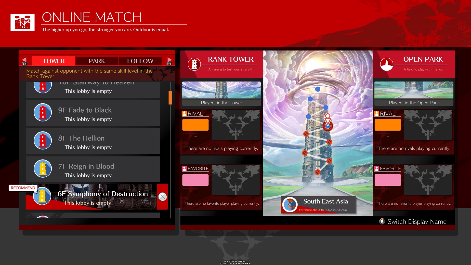สำหรับล็อบบี้ออนไลน์ของเกมนี้ก็ทำออกมาได้แปลกแหวกแนวใช่เล่น เพราะทุกอย่างจะเป็นแบบ pixel แม้แต่อวาตาร์ของผู้เล่นเองก็เป็น pixel ดังนั้นคุณจะแต่งออกมาแบบไหนยังไง มันก็จะออกมาดูตลกน่ารักมากกว่าจะเท่บาดใจครับ ซึ่งในทีแรกสุดเลย คุณจะได้ลองฝีมือกับคอมพิวเตอร์ก่อนเพื่อวัดระดับว่าฝีมือของคุณควรอยู่ในชั้นไหนของหอคอย เพื่อที่คุณจะได้เจอกับคู่ต่อสู้ระดับเดียวกัน แต่จะไม่สามารถลงไปสู้กับคนที่อยู่ในชั้นล่างกว่าได้นะ ซึ่งก็เป็นอะไรที่ค่อนข้างน่าเสียดายว่าตอนที่ผมลองเล่น พยายามจะออนไลน์หลายรอบแต่กลับไม่เจอใครอยู่ในล็อบบี้ด้วยกันเลย (ทั้งที่เลือกเซิฟเวอร์สิงคโปร์แล้วนี่แหละ)