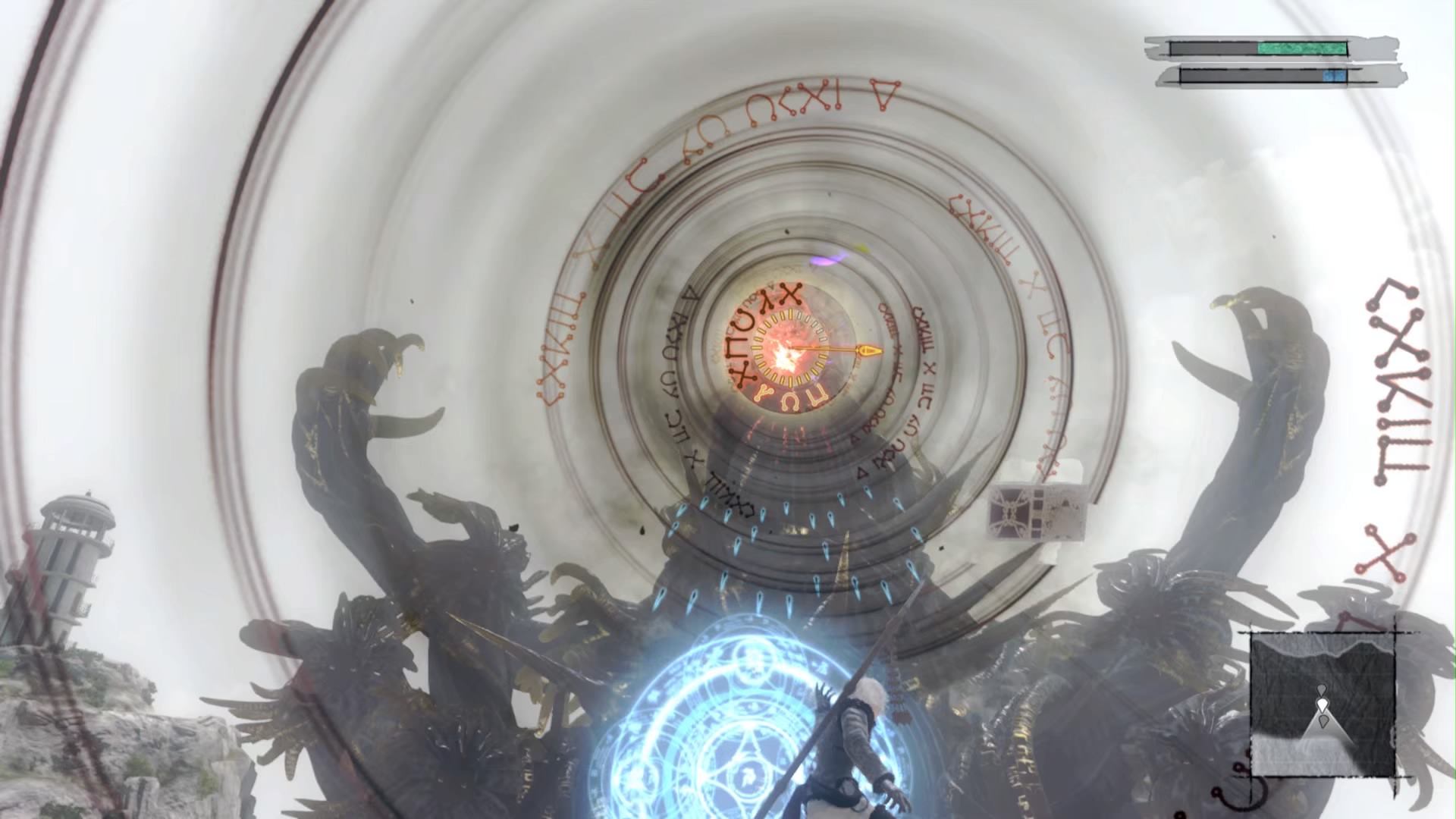 ถึงกระนั้นเอกลักษณ์อย่างหนึ่งของเกมนี้ก็คือการต่อสู้กับบอสนั่นเอง บอสแต่ละตัวดีไซน์ออกมาได้ดูดี อลังการและน่าเกรงขาม แต่สิ่งที่ทำให้โดดเด่นก็คือการผสมผสานเกมชูตติ้งที่สาดกระสุนทั่วจอเข้ามากับรูปแบบเกมแอ็กชันนั่นเองครับ บอสแต่ละตัวจะมีแพทเทิร์นการโจมตีในแบบเกมยานยิงที่คุณจะต้องมองหาจุดกระโดดหลบแล้วเข้าไปตี หรือไม่ก็กดใช้เวทมนตร์เพื่อทำลายเม็ดกระสุนของบอสเพื่อเข้าประชิด ทำให้การสู้บอสแต่ละตัวบังคับให้คนเล่นต้องหยุดสังเกตแพทเทิร์นพอสมควร ไม่สามารถสักแต่วิ่งเข้าไปตีแลกเลือดได้ (เว้นแต่คุณจะเล่นในรอบหลัง ๆ ที่เก่งมากแล้ว)