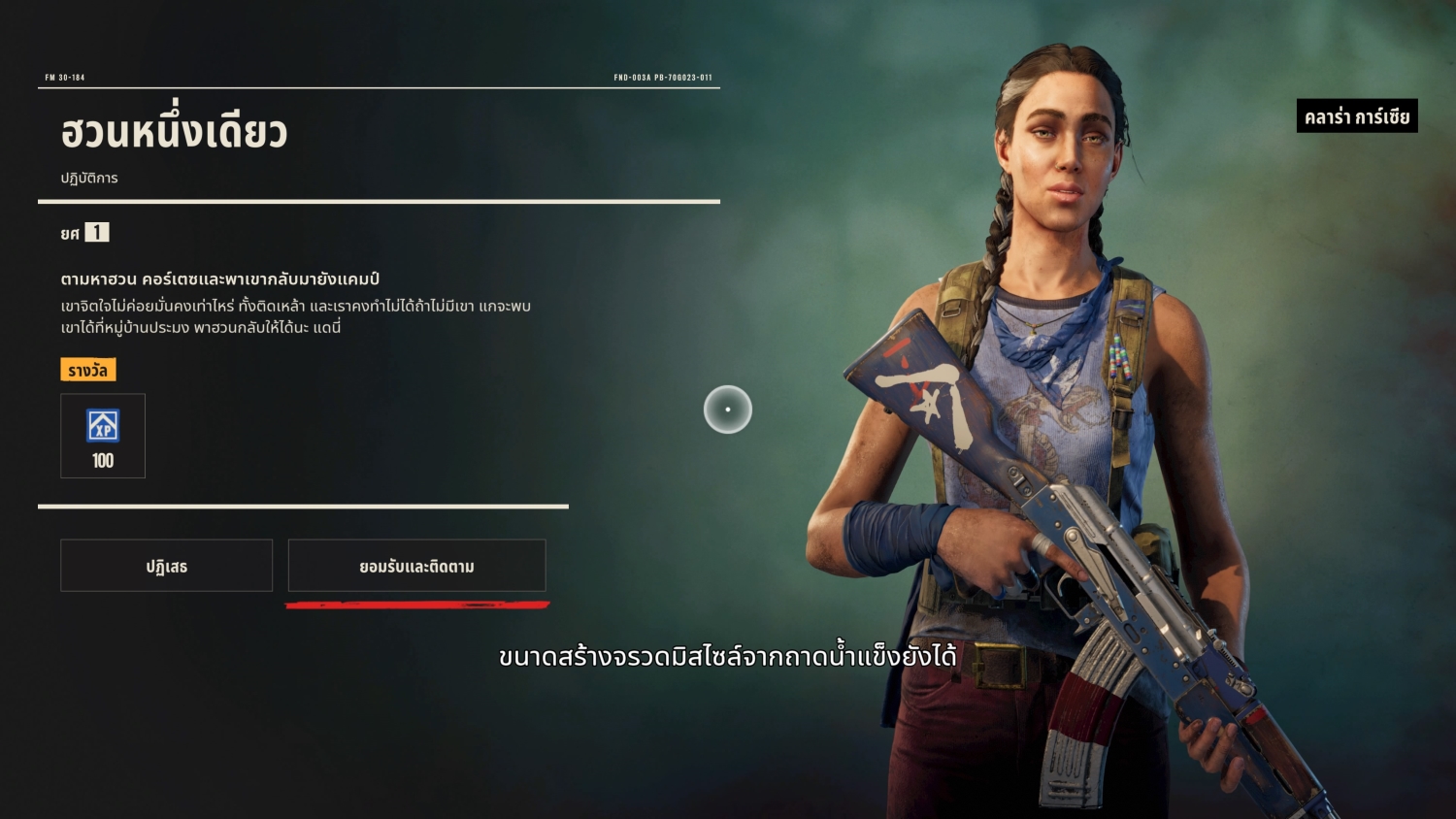 มาถึงประเด็นสำคัญสุด ๆ ซึ่งผมเชื่อว่าหลายคนรอคอยที่จะอ่านรายละเอียดในเรื่องนี้ เอาเป็นว่า ผมบอกชัดเจนให้เลยครับว่า เกมนี้แปลไทยดีมาก ทำได้ดีกว่า Ghost Recon Breakpoint แบบฟ้ากับเหว สำนวนแปลโอเค กล้าใช้คำหยาบได้ถูกที่ถูกจังหวะ เลือกฟอนต์ได้สวยงาม ที่สำคัญคือไม่มีปัญหาวรรณยุกต์จมหรือลอยให้ได้เห็น จะมีให้ติบ้างก็แค่เรื่องการทับศัพท์ภาษาอังกฤษ ที่ดูแล้วไม่น่าจะถูกตามหลักการมากนัก