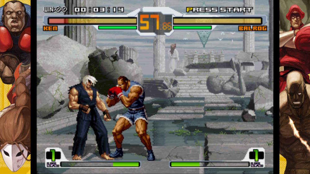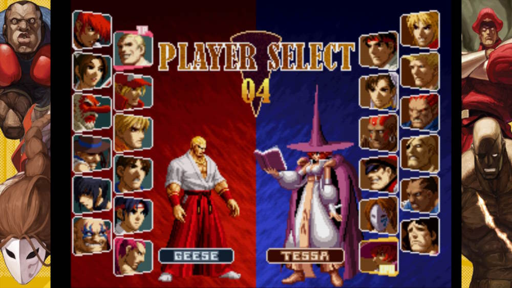 อ่ะ เรามาดูข้อมูลเกมพื้นฐานกันบ้าง โดยเกมจะมีตัวละครให้เล่นแบบจุใจทั้งหมด 36 ตัวละครจาก SNK และแคปคอม ยกตัวอย่างคนดัง ๆ ก็ได้แก่ เคียว คุซานางิ, เทอร์รี โบการ์ด, ไม ชิรานุอิ, อาธีนา, ริว, ชุนลี, ดมิทรี, ซีโร, เรดอารีเมอร์ เป็นต้น