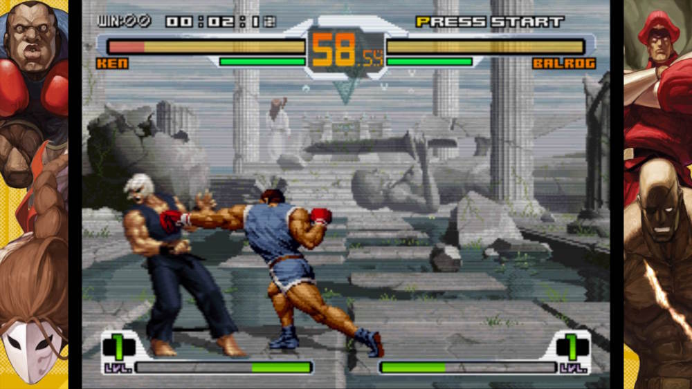 เอาล่ะ คราวนี้หันมาดูเกมเวอร์ชันล่าสุดที่เพิ่งวางจำหน่ายนี้กันบ้าง โดยต้องขอบอกก่อนว่า แต่เดิมเกมนี้เป็นเกมที่ทาง SNK ต้องเข็นออกมาขายให้ได้ตามสัญญาที่ผูกมัดเอาไว้ ก็เลยทำออกมาเหมือนไปหยิบเอาเกม King of Fighters 2002 มาจับยัดตัวละครจากสตรีทไฟท์เตอร์ เข้าไปแค่นั้นเอง ส่งผลให้ตัวเกมไม่บาลานซ์ ขาดความสมดุลของตัวละครจากทั้งสองฝั่งของบริษัท บวกกับเวลาเล่นมันจะดูเหมือนลอย ๆ แปลก ๆ ไม่ลื่นไหลชัดเจนเหมือนกับเกมของทางแคปคอม