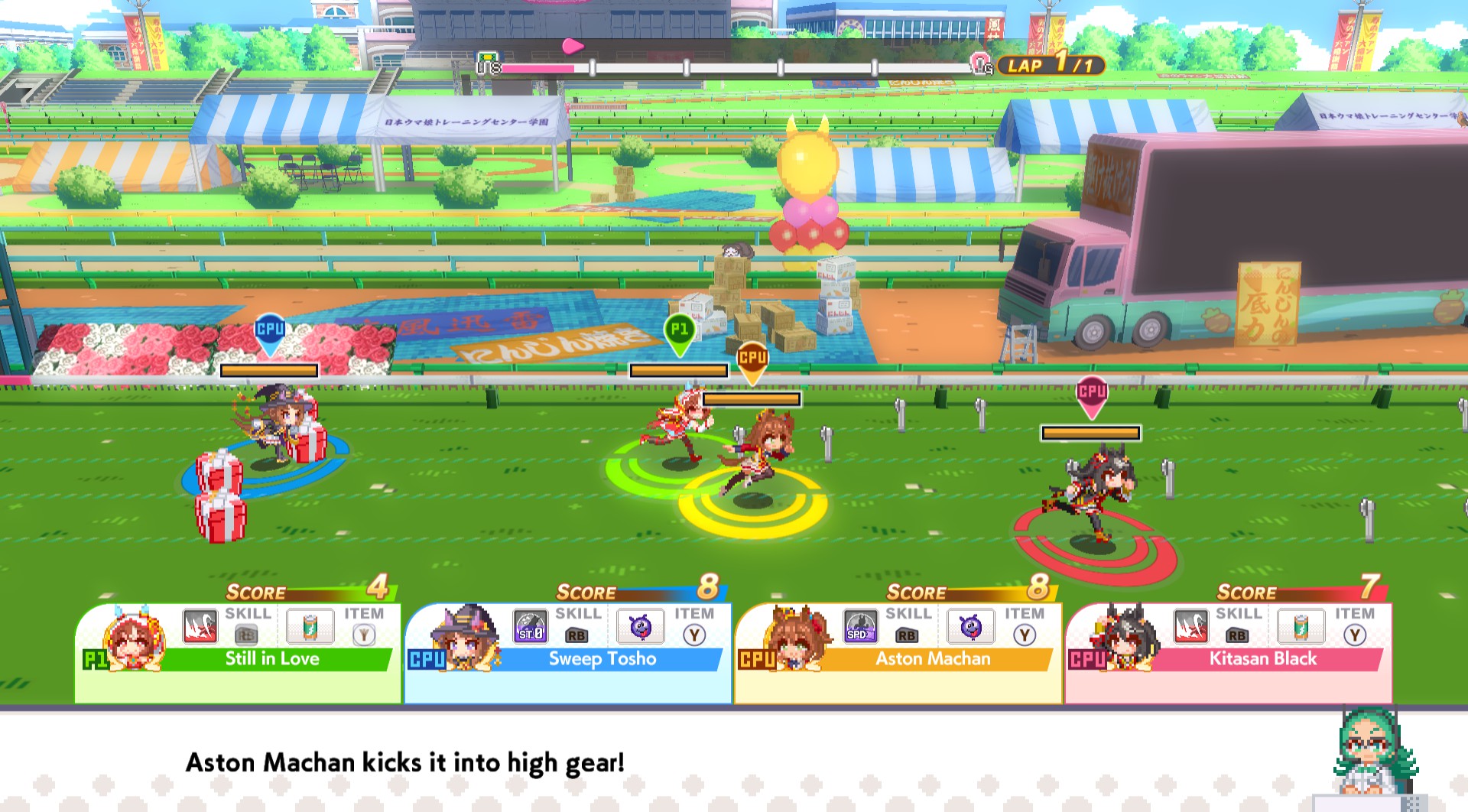 สำหรับ Umamusume: Pretty Derby – Party Dash เป็นผลงานในแนว “เกมปาร์ตี้” ครับ เน้นเล่นแข่งขันสนุกสนานกันได้หลายคน จะเล่นกับเพื่อนฝูงหรือครอบครัวที่อยู่ในสถานที่เดียวกัน หรือเล่นกับคนอื่น ๆ แบบออนไลน์ก็ได้ทั้งนั้น