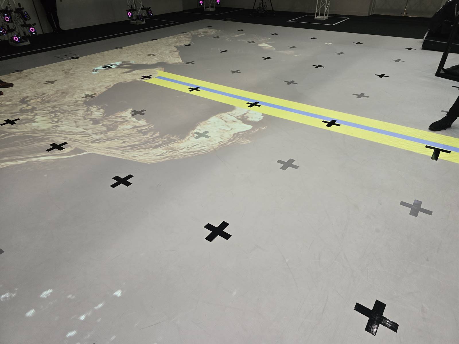สตูดิโอแห่งนี้มีการติดตั้งโปรเจคเตอร์เอาไว้สองตัว โดยตัวหนึ่งเอาไว้ฉายภาพต่าง ๆ ตามปกติทั่วไปที่ติดตั้งในแนวนอน แต่โปรเจคเตอร์ตัวที่สองนั้นจะติดตั้งในแนวตั้งเพราะจะมีวัตถุประสงค์ในการใช้งานเฉพาะ นั่นเพราะเมื่อฉายโปรเจคเตอร์ลงมาแล้วบนพื้นก็จะปรากฏข้อมูลตำแหน่งการยืน หรือตำแหน่งในการเดินให้กับนักแสดงโดยใช้ข้อมูล 3D จากคัตซีน แทนที่ปกติจะต้องใช้เทปแปะพื้นบอกตำแหน่งกัน การใช้วิธีนี้จึงช่วยย่นระยะเวลาได้มากเลยทีเดียว