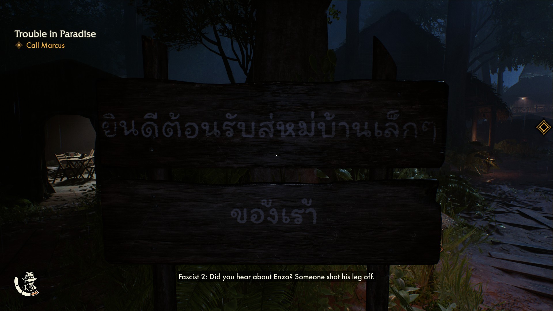 เอาล่ะ ผมขอสรุปในหัวข้อนี้ในแบบนี้ว่า บรรยากาศความเป็นไทยในเกมนี้ มันก็ยังมีกลิ่นเอ็กโซติกแบบฝรั่งมองไทยนั่นแหละ แต่คราวนี้เราได้คนไทยจริง ๆ ไปทำงานในส่วนการแสดงและให้เสียง (และน่าจะรวมถึงการแปลบทพูดด้วย) ทำให้อย่างน้อย มันออกมาดูดีในระดับเดียวกับเวลาเราดูหนังฝรั่งที่มีคนไทยเล่น ผมให้ผ่านนะ แล้วบวกแต้มให้ด้วย ด้านข้อติ ก็คงจะเป็นปัญหาโลกแตกของฟอนต์ไทยในเกม ที่ตามป้ายชื่อสถานที่ต่าง ๆ มันสระลอย วรรณยุกต์ตกหล่น ซึ่งไม่รู้ทำไมถึงแก้ปัญหานี้กันไม่ค่อยได้ ไม่ว่าจะเป็นเกมอะไรก็ตาม