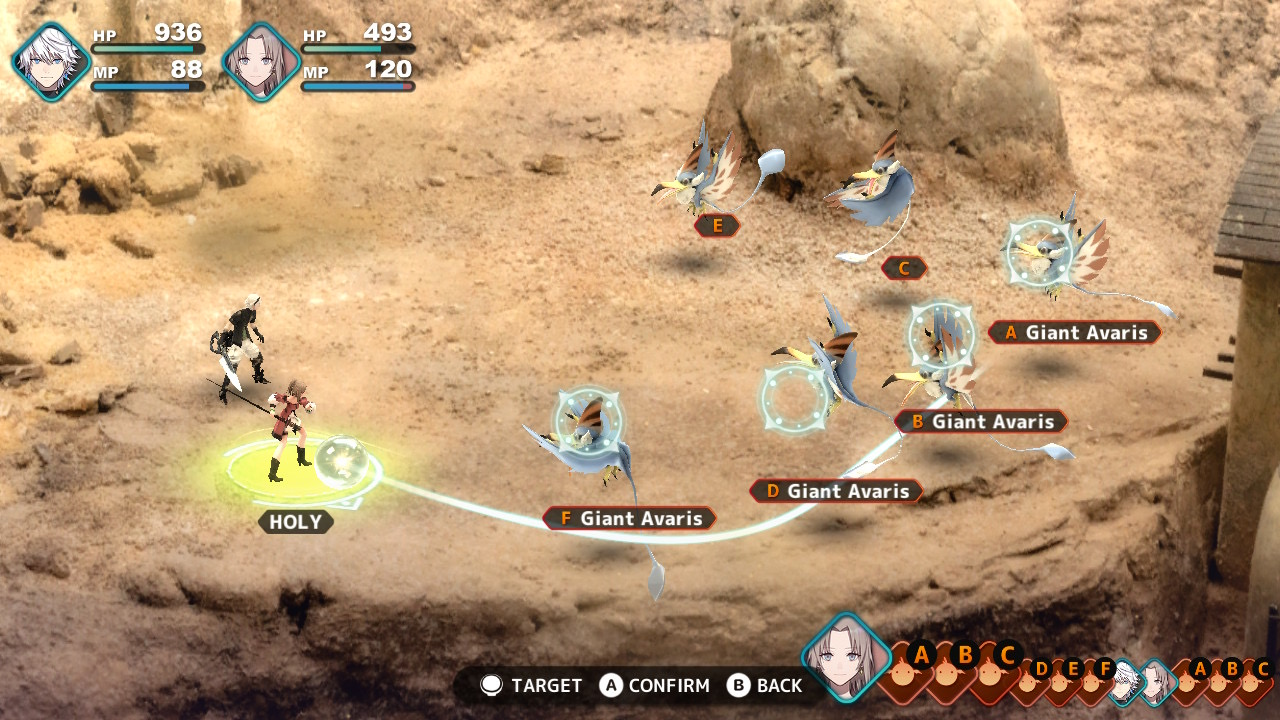 FANTASIAN Neo Dimension ให้ความรู้สึกในการเล่นเหมือนเกมภาษายุค 90 เปี๊ยบเลยครับ ถ้าจะพูดให้ถูก ผมว่ามันเหมือนเกมภาคหนึ่งในตระกูลไฟนอล แฟนตาซีนั่นแหละ (ทั้งเรื่องระบบเกม งานภาพ และเพลงประกอบ) โดยระบบการต่อสู้จะเป็นเทิร์นเบสอันคุ้นเคย แต่จะมีการเพิ่มลูกเล่นในการ “เล็ง” เป้าหมายศัตรู ที่สามารถเพิ่มความได้เปรียบได้หลากหลายแตกต่างกันไปตามแต่ตัวละครฝั่งเรา (ยกตัวอย่างเช่น การดัดแนวเล็งให้เกิดการยิงเวทย์วิถีโค้ง เพื่อให้โดนศัตรูพร้อมกันหลาย ๆ ตัว เป็นต้น)