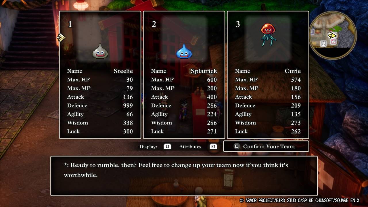 ในส่วนของเกมเพลย์นั้น อาจจะเรียกได้ว่ามันเป็นสูตรบางอย่างที่ใช้กันมายาวนานของเกมแฟรนไชส์ Dragon Quest ครับ ทั้งในแง่ของหน้าจอเมนู ตัวเลือก วิธีการเล่น ฯลฯ นั่นเพราะองค์ประกอบหลาย ๆ อย่างนั้นก็ยังมีให้เห็นใน Dragon Quest XI ที่เป็นภาคหลักล่าสุดนั่นล่ะครับ