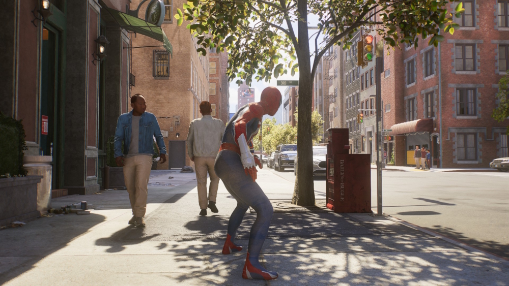ด้านภาพสะท้อนแบบ Ray Tracing, เงาแบบ Ray Tracing และการจำลองแสงเงาวัตถุแบบ Ray Tracing ก็ช่วยให้เมืองนิวยอร์กของ Marvel มีชีวิตชีวาขึ้นรอบ ๆ ตัวคุณ ผู้ที่ใช้ NVIDIA GeForce RTX GPU สามารถใช้งานฟังก์ชัน DLSS Ray Reconstruction ได้ เทคนิคนี้ใช้เครือข่าย AI ที่ฝึกจากซูเปอร์คอมพิวเตอร์ของ NVIDIA ที่สร้างพิกเซลคุณภาพสูงขึ้นระหว่างลำแสงตัวอย่าง ช่วยให้ได้ภาพแบบ Ray Tracing ที่คมชัดและสมจริงยิ่งขึ้น