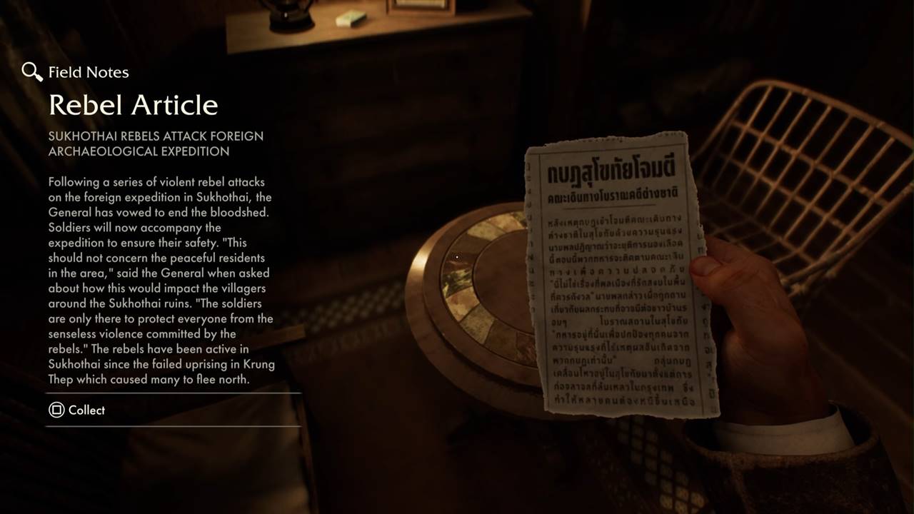 เมื่อคุณไปวาติกันนั้นเวลาตระเวนไปไหนมาไหนคุณจะได้ยินเสียงบรรดา NPC รวมถึงทหารฟาสซิสต์พูดคุยกันเป็นภาษาอิตาลี เอกสารที่เก็บมาได้ก็มักจะเขียนเป็นภาษาอิตาลี พอไปอียิปต์ก็จะได้ยินเสียงคนคุยกันจอแจเป็นภาษาอียิปต์ และเมื่อไปเยือนสุโขทัยก็จะได้ยิน NPC คุยกันเป็นภาษาไทยกว่า 90% เลยรวมถึงเอกสารในเกมด้วย สิ่งต่าง ๆ เหล่านี้มันเป็นอะไรที่จะทำให้คุณรู้สึกได้เลยว่าเราไปถึงที่นั่นกันจริง ๆ ครับ ดังนั้นหากมีคะแนน immersion นี่เกมนี้คะแนนทะลุหลอดแบบไร้กังขา