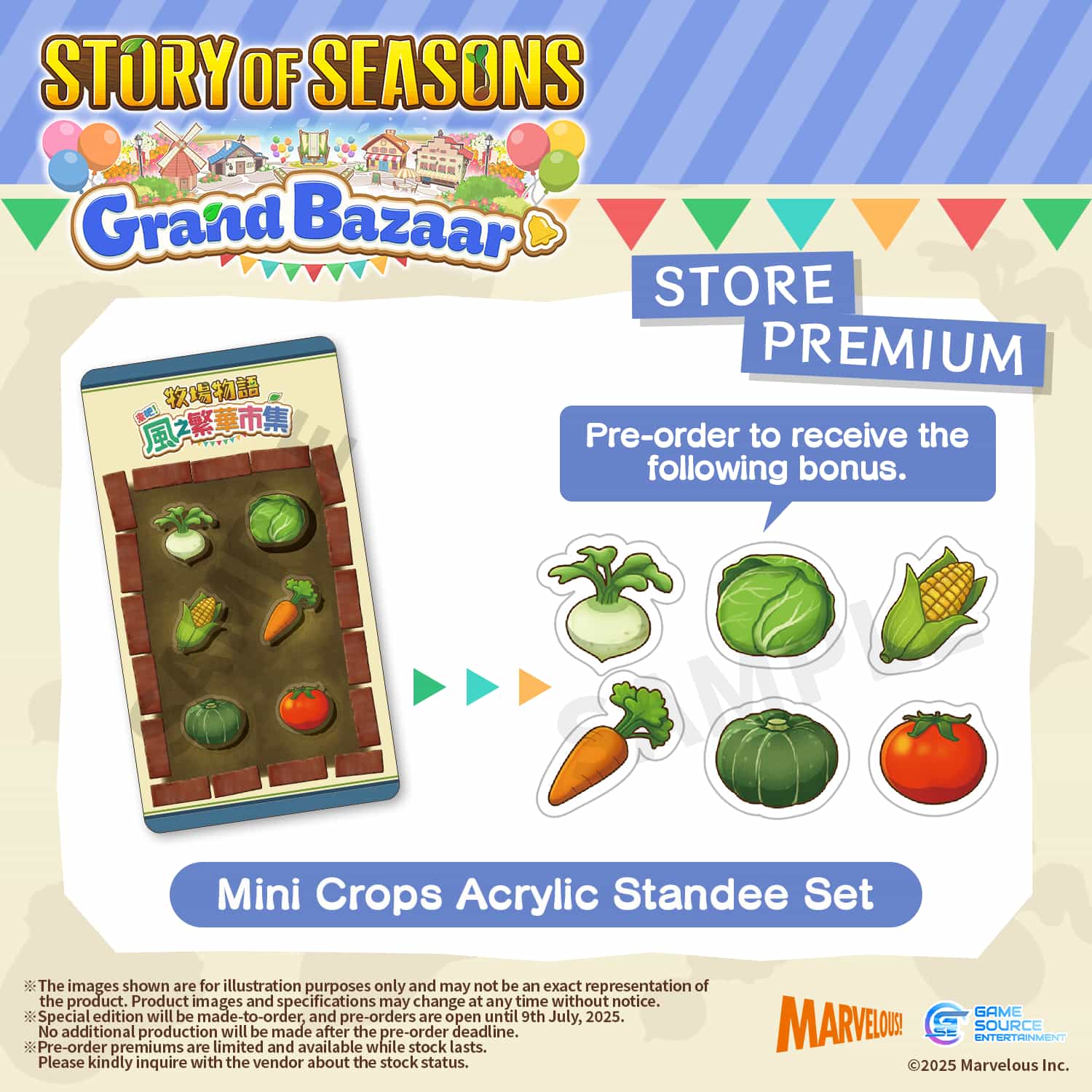 Nintendo Switch™/Nintendo Switch™ 2 Chinese Physical Edition ยังมี【GSE Special Edition】, ที่ประกอบไปด้วยโบนัสเอ็กซ์คลูซีฟสามอย่างที่ออกแบบมาพิเศษสำหรับ “Story of Seasons: Grand Bazaar” แฟน ๆ ของซีรีส์ “Story of Seasons” ไม่ควรพลาด!