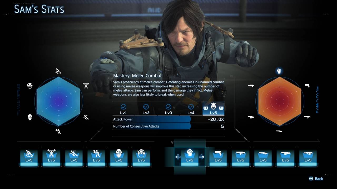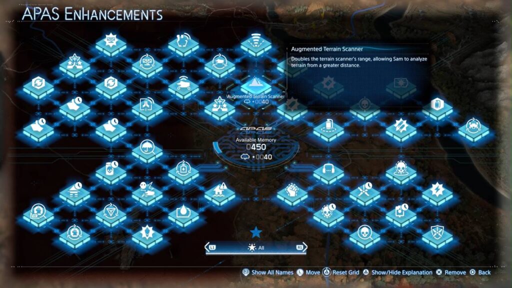 อีกหนึ่งองค์ประกอบในแง่นี้ก็คือ APAS Enhancements ครับ ซึ่งสิ่งนี้จะมีรูปแบบคล้ายเป็นสกิลทรีในเกมอื่น ๆ เลยก็ว่าได้ โดยสิ่งต่าง ๆ เหล่านี้จะเปรียบเสมือนเป็นความสามารถแพสซีฟของแซม เช่นอาจจะทำให้กระสุนจากปืนแรงขึ้น หรือมีสายคาดพัสดุที่คุณแบกทำให้เวลาล้มของไม่กระจัดกระจายตามพื้น อะไรแบบนั้น ซึ่งแต้มที่คุณจะนำมาใช้อัปเกรดก็มาจากระดับความสัมพันธ์ (ดาว) ที่คุณมีกับผู้คนตามแต่ละสถานที่นั่นล่ะครับ ยิ่งคุณเพิ่มความสัมพันธ์กับพวกเขามาก ก็จะยิ่งทำให้คุณมีแต้มมาอัปสกิลมาก และสกิลเหล่านั้นก็จะทำให้การเดินทางและการเล่นของคุณยิ่งสะดวกสบายขึ้นกว่าเดิมเช่นเดียวกัน