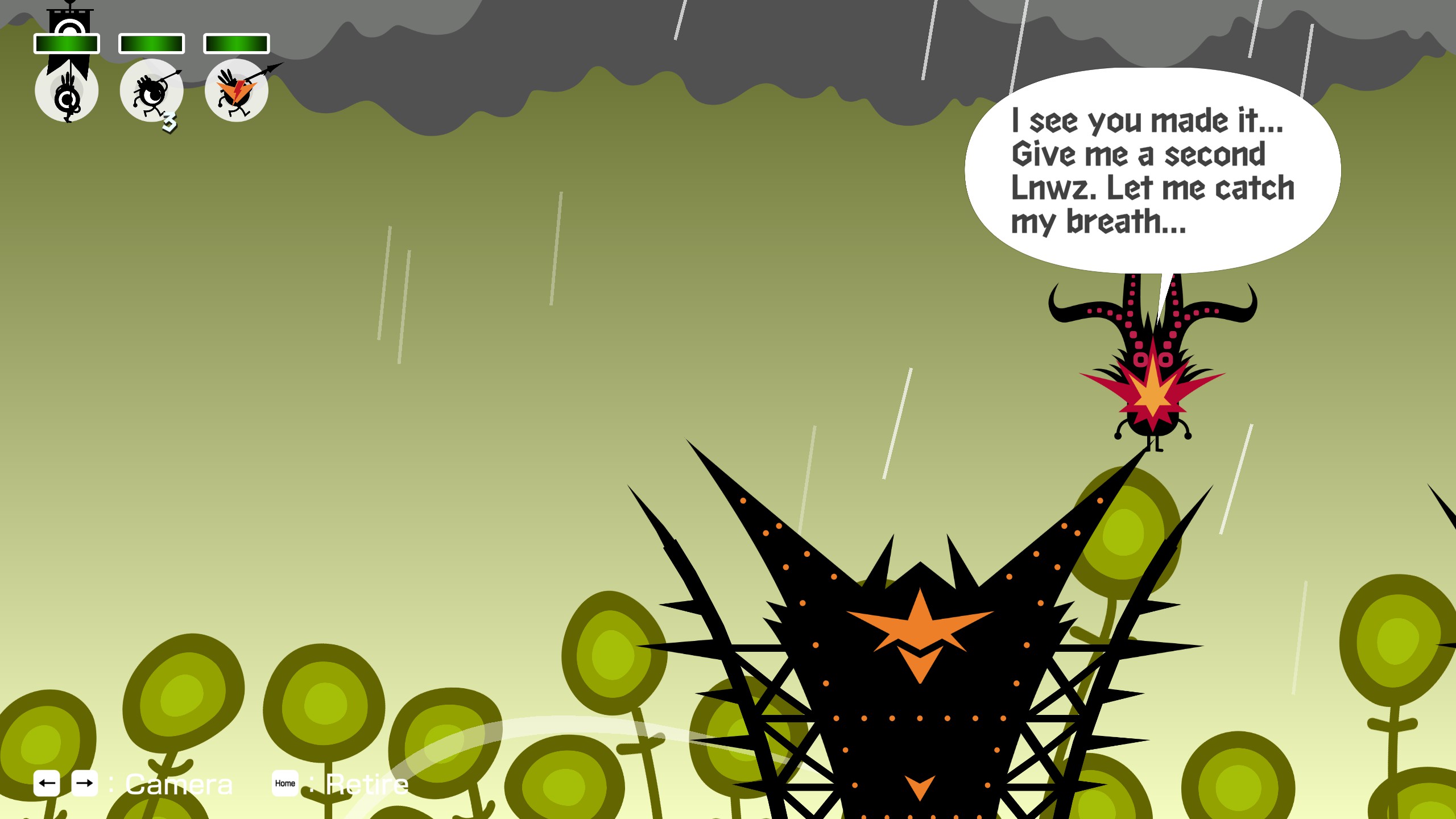 แต่ชีวิตมันไม่ง่าย! ลมพายุพัดโหมกระหน่ำซัดเรือ Patapon อัปปาง! เหล่า Patapon ผู้ซื่อสัตย์กระจัดกระจายไปคนละทิศละทาง…