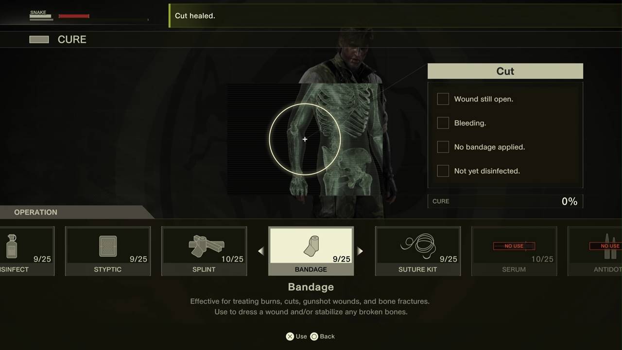 ระบบการรักษาตัวก็เป็นอีกหนึ่งองค์ประกอบสำคัญประจำภาคครับ ถ้าคุณเล่นอะไรเสี่ยง ๆ เยอะ โอกาสที่จะโดนโจมตีก็เยอะตาม ซึ่งภาคนี้เวลาคุณโดนโจมตีหนักก็อาจทำให้เกิดสภาวะแผลหนักขึ้นมา และคุณก็ต้องกดเข้าเมนูเพื่อรักษาตัวเอง เพราะเมื่อใดที่ร่างกายคุณมีแผล ค่าพลังชีวิตสูงสุดของคุณจะลดลงจนกว่าคุณจะรักษาแผลจนหายครับ ซึ่งหากคุณเล่นเกมนี้เป็นครั้งแรก คุณจะได้ใช้ระบบนี้บ่อยแน่ ๆ เมื่อเกิดสถานการณ์ฐานแตกเพราะโดนเจอตัวหรือไม่ก็สู้บอสทั้งหลายนั่นล่ะครับ