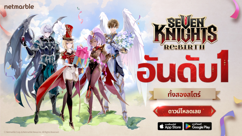 กรุงเทพฯ, ประเทศไทย (วันที่ 19 กันยายน พ.ศ. 2568) – เน็ตมาร์เบิ้ล ผู้พัฒนาและผู้เผยแพร่เกมคุณภาพสูงชั้นนำ ประกาศว่าเกม Collectible RPG ใหม่ล่าสุด Seven Knights Re:BIRTH ได้ติดอันดับชาร์ต ‘เกมทำรายได้สูงสุด’ ของ App Store ในประเทศไทยตั้งแต่วันแรกที่เกมเปิดตัวครั้งใหญ่ อีกทั้งเกมยังติดอันดับ 1 ชาร์ต ‘เกมฟรียอดนิยม’ ทั้งบน Google Play และ App Store ในประเทศไทยอีกด้วย