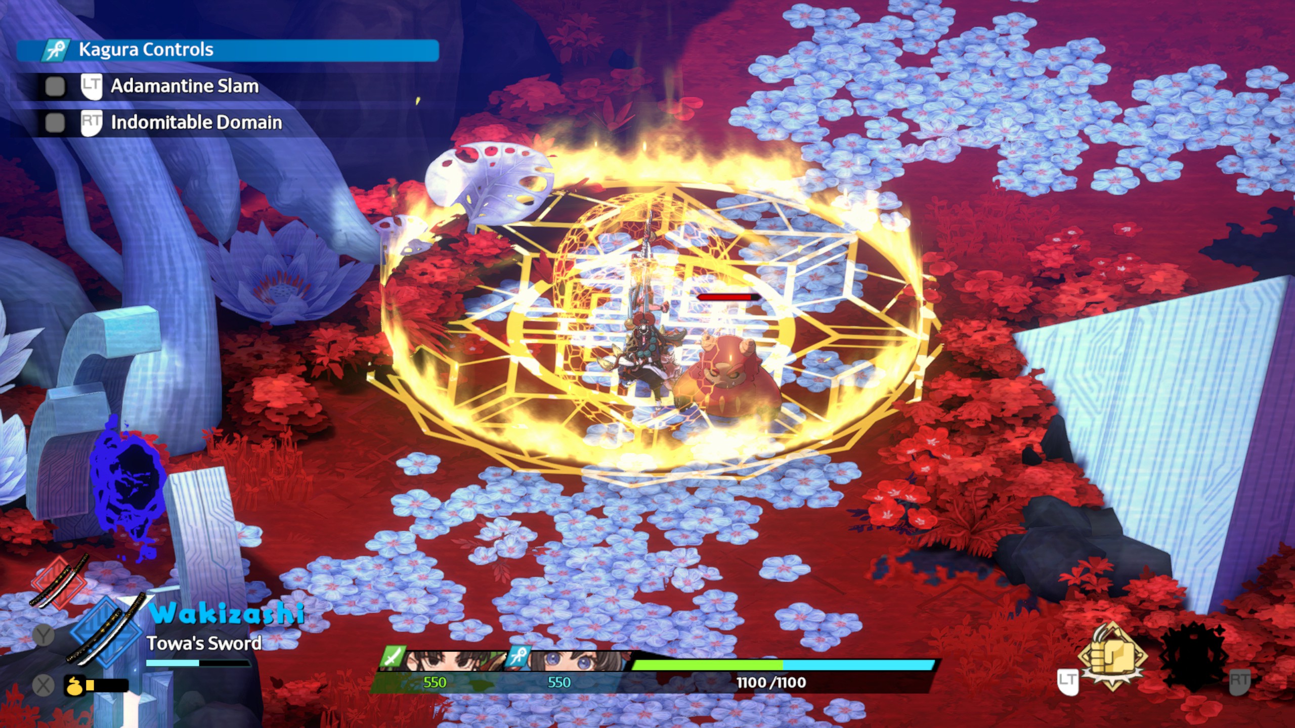 ตัว Kagura จะทำงานอัตโนมัติ ร่ายสกิลสนับสนุนและโจมตีระยะไกล ผู้เล่นสามารถเข้าไปควบคุมตัว Kagura ชั่วคราวได้ แต่การสลับนี้มักทำให้การควบคุม Tsurugi ขัดๆ การต่อสู้อาจติดขัดถ้าใช้อยู่บ่อย ๆ