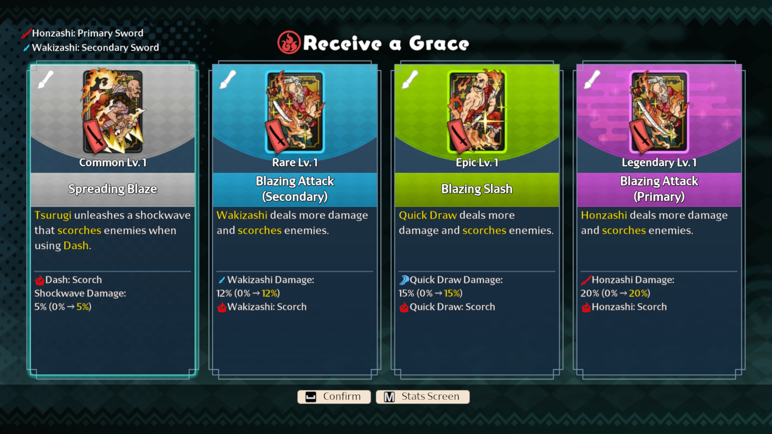 นอกจากนั้น ขณะที่อยู่ในดันเจี้ยนคุณจะได้ “Graces” หรือก็คือการ power up ที่คุณจะเห็นเป็นการ์ดใบต่างๆ ที่ปรับแต่งความสามารถของตัวละคร เช่น เพิ่มพลังโจมตี เพิ่มความเร็ว ลดคูลดาวน์ เพิ่มโอกาสคริติคอล ฯลฯ