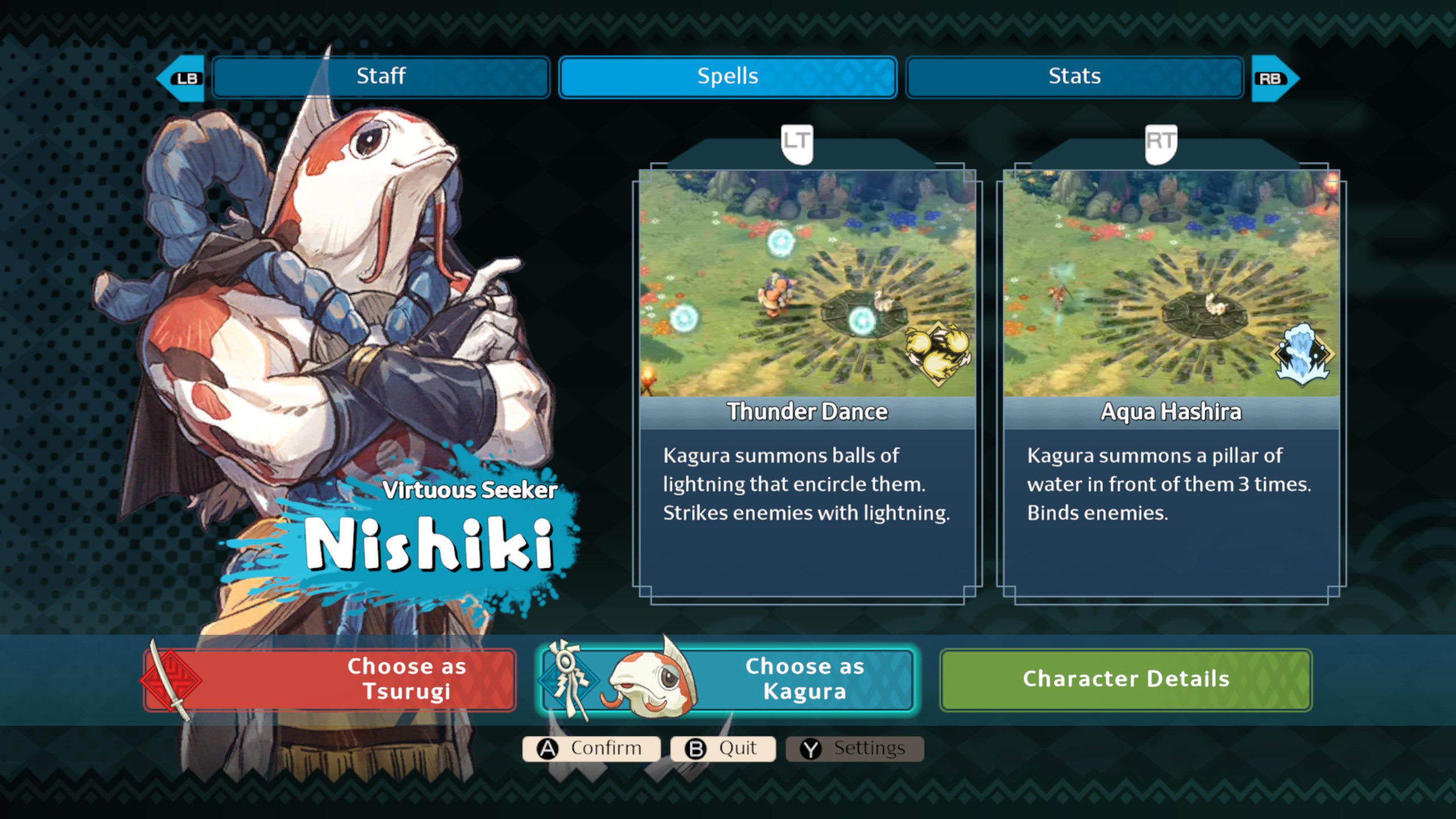 Tsurugi คือดาบ เป็นตัวละครหลักที่ผู้เล่นควบคุมโดยตรง อาทิ การเคลื่อนที่ การโจมตี สกิลใกล้/ไกล ขึ้นกับตัวละครและดาบที่ใช้ ส่วน Kagura คือคฑา จะเป็นเหมือนผู้ช่วยสำรองที่เดินตามหลังโดย AI และร่ายสกิล/เวทย์ สนับสนุนตัว Tsurugi ทั้งด้านบัฟหรือโจมตีระยะไกลได้ บลาๆ