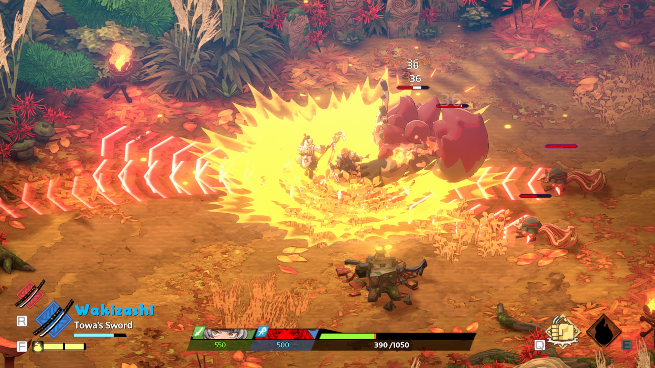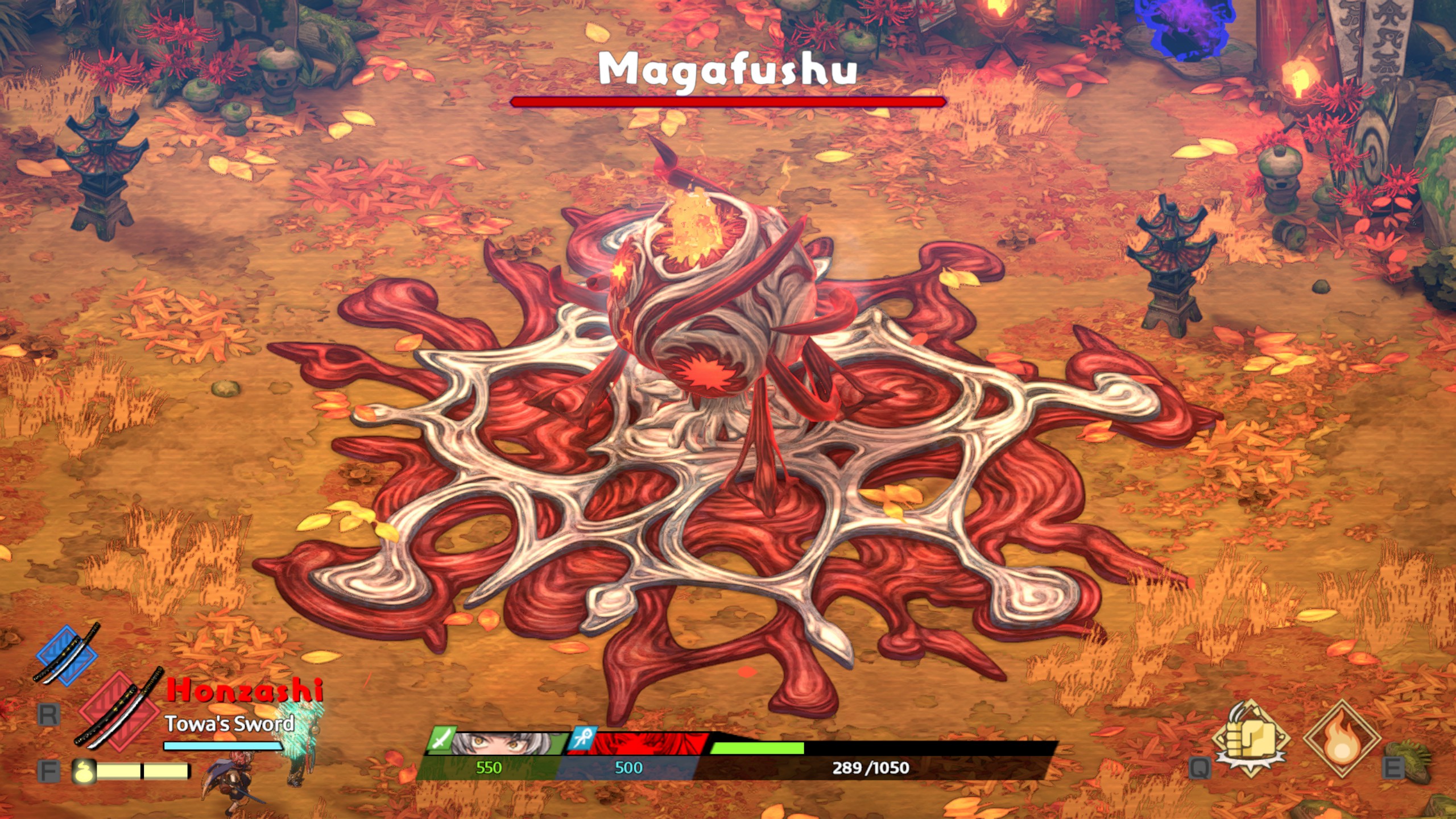 อย่างที่เกริ่นไว่ในย่อหน้าแรกว่าเกมเป็นแบบ Roguelite หมายความว่าแต่ละรอบ คุณจะวิ่งลงไปในฉากโทริอิแบบกึ่งสุ่ม โดยต้องไล่ฆ่าศัตรู เก็บของ และจบด้วยบอส วนไป
