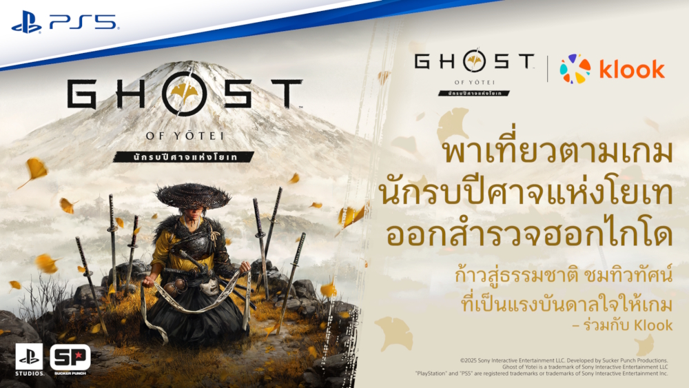 นอกจากนี้ เพื่อฉลองให้กับความร่วมมือระหว่าง PlayStation และ Klook เราขอเปิดตัวแคมเปญ “Experience Ghost of Yōtei” ที่เปิดโอกาสให้แฟน ๆ และเกมเมอร์ได้ร่วมสนุก พร้อมโอกาสรับของรางวัลสุดพิเศษ ไม่ว่าจะเป็น Ghost of Yōtei Collector’s Edition, อุปกรณ์เสริม PS5 Ghost of Yōtei รุ่นลิมิเต็ดเอดิชัน, สินค้าสุดเอ็กซ์คลูซีฟ และบัตรกำนัลท่องเที่ยวจาก Klook โดยท่านสามารถดูรายละเอียดเพิ่มเติมเกี่ยวกับแคมเปญได้ที่นี่