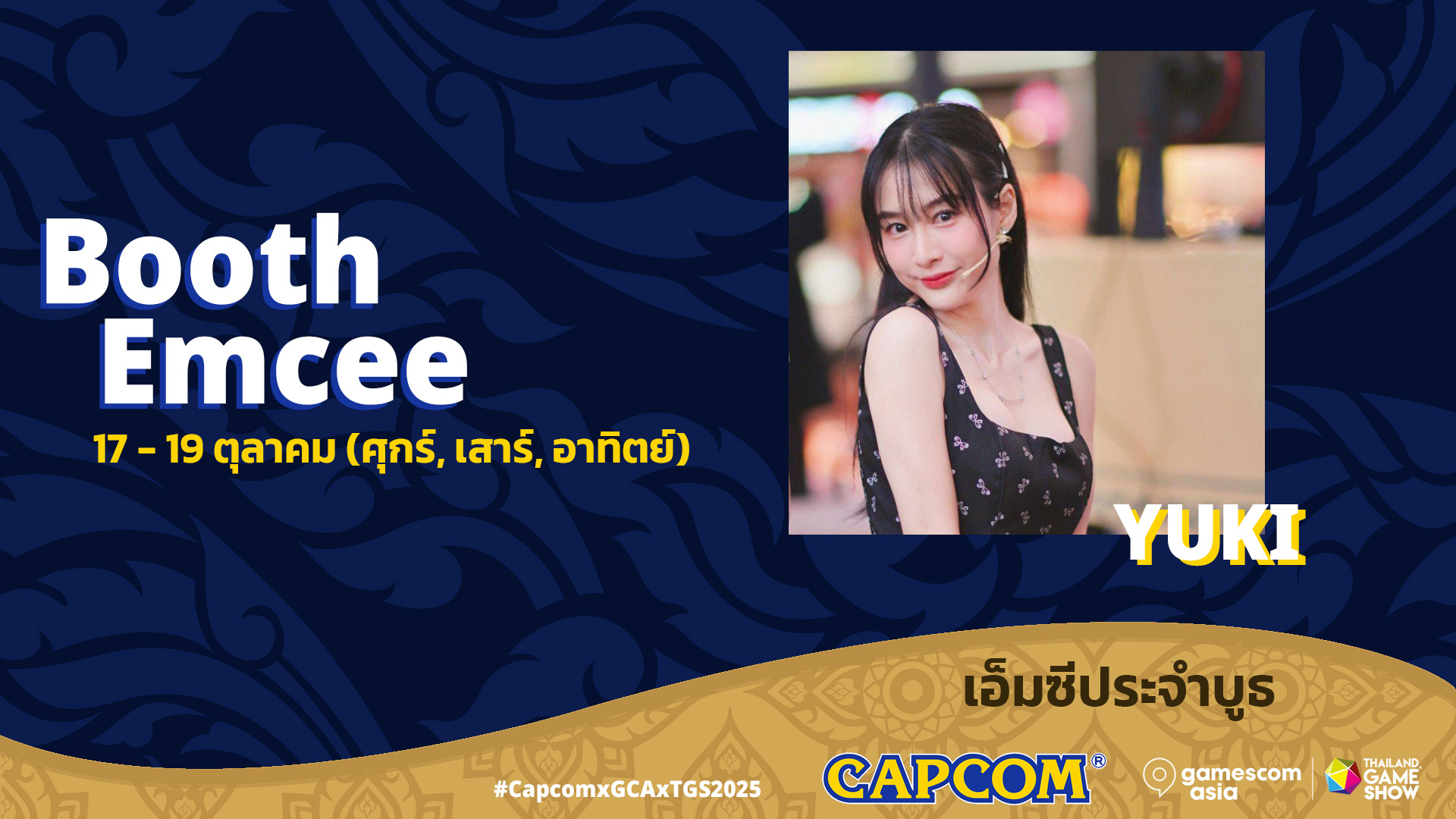 เพื่อกระตุ้นให้แฟน ๆ มีส่วนร่วมอย่างต่อเนื่อง บูธ Capcom จะมีเอ็มซีผู้มากความสามารถประจำประเทศไทยอย่าง YUKI ที่จะมาคอยแนะนำผู้เยี่ยมชมบูธของ Capcom ให้ได้รู้จักสิ่งน่าสนใจต่าง ๆ และมีส่วนร่วมในกิจกรรมกับผู้ชมตลอดงาน