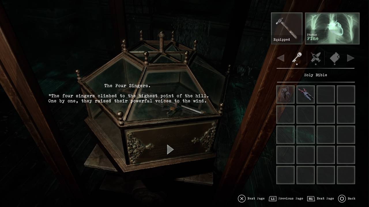 สิ่งหนึ่งที่ผมคิดว่าหลายคนน่าจะชอบก็คืออาวุธหลายชิ้นของเกมนี้สามารถที่จะอัปเกรดได้ ซึ่งของอัปเกรดก็มักจะอยู่ในจุดที่เป็นเส้นทางแบบ optional หรือก็คือไม่ได้บังคับไป แต่ถ้าคุณขยันซอกแซก ขยันสำรวจก็มักจะได้ของดีมาใช้นั่นล่ะครับ ที่สำคัญคือเกมนี้คุณไม่จำเป็นต้องกังวลเรื่องช่องเก็บของ เพราะทุกอย่างที่เก็บได้จะติดตัวคุณไปตลอด ไม่จำเป็นต้องวิ่งหากล่องใส่ของเพื่อสลับไอเท็มที่จำเป็นต้องใช้ ไม่ว่าจะคีย์ไอเท็มเพื่อผ่านฉาก หรือบรรดาอาวุธและของฟื้นพลัง คุณสามารถวิ่งไถเก็บได้ไม่ต้องกังวลว่าของจะเต็ม