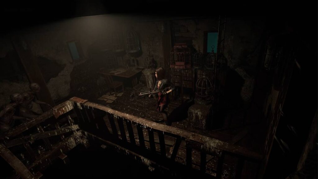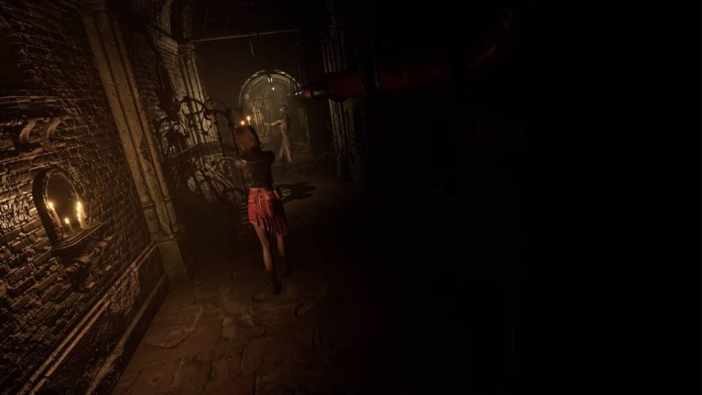 องค์ประกอบด้านแสงและเงาก็เป็นอีกหนึ่งที่ส่งผลด้านการต่อสู้ครับ ความมืดในเกมนี้เรียกได้ว่าอันตราย เพราะเกมใส่กลไกเข้ามาว่าหากคุณอยู่ในจุดที่ไม่มีแสงไฟมากเกินไปสุดท้ายคุณจะเกมโอเวอร์ ดังนั้นสิ่งที่คุณจะได้พกติดตัวไว้ตั้งแต่ต้นเกมก็คือไฟแช็คเอาไว้เพิ่มแสงสว่าง (รวมถึงใช้แก้ปริศนาหลายจุด) แต่ปัญหาก็คือพอคุณจุดไฟแช็คคุณจะใช้อาวุธไม่ได้ แต่ถ้าอยู่ในจุดมืดนี่การสลับมาถืออาวุธก็เสี่ยงจะเกมโอเวอร์แทน หลายครั้งเกมเลยจะใส่ตำแหน่งที่เป็นเชิงเทียนให้คุณจุดไฟได้แทน เพื่อให้คุณมือว่างและใช้อาวุธสู้ได้ แต่มันก็เหมือนบีบคนเล่นกลาย ๆ ว่าจะต้องสู้ในพื้นที่จำกัดนั่นล่ะครับ และกว่าจะได้ไฟฉายที่จะช่วยให้ชีวิตสะดวกขึ้นก็ต้องไปช่วงกลางเกมเลยเหมือนกัน
