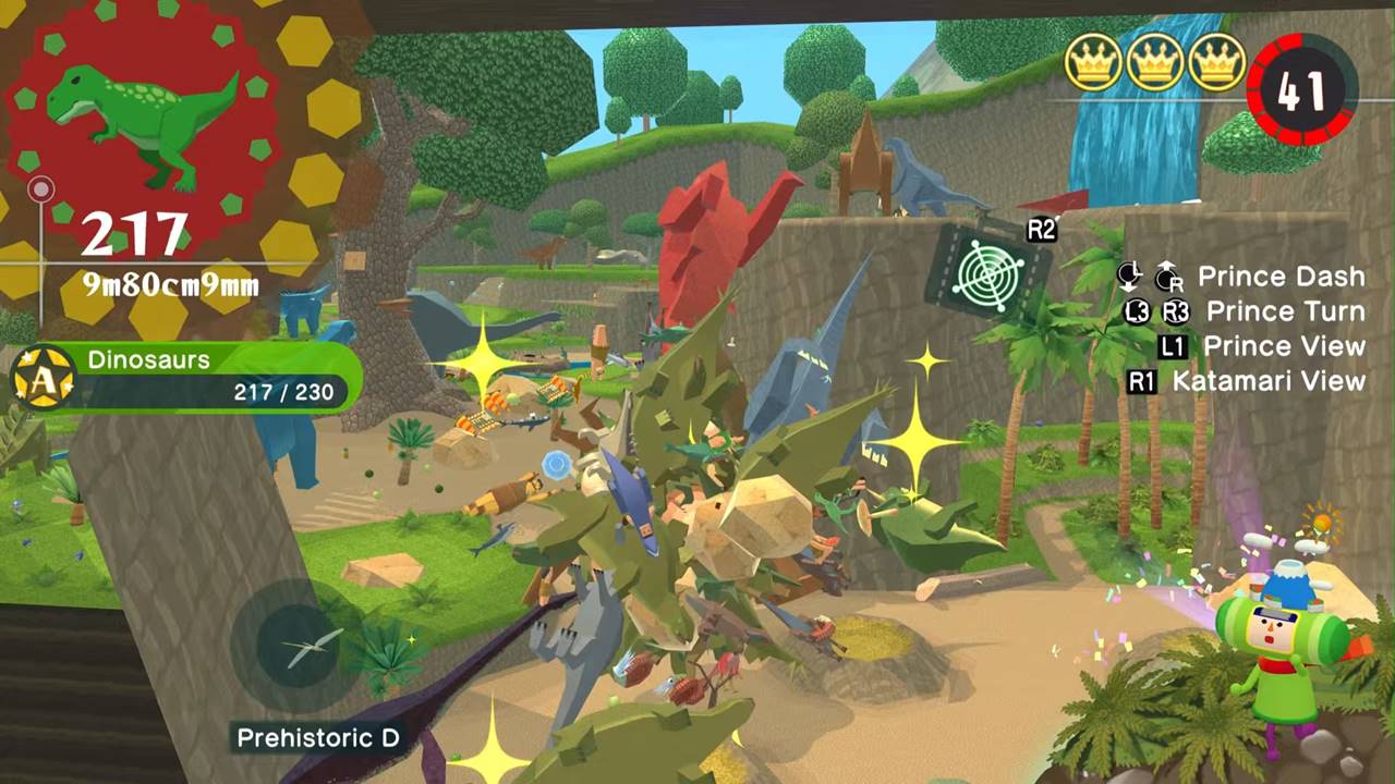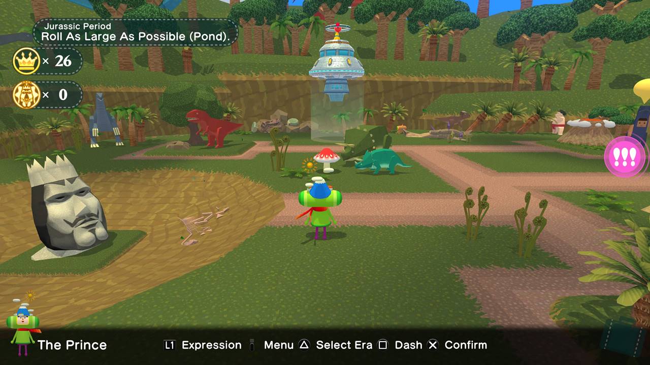 จุดเด่นประจำภาคนี้ผมคิดว่าก็คงไม่พ้นเซ็ตติ้งที่จะให้คุณตระเวนไปในฉากต่าง ๆ ที่อ้างอิงยุคสมัยที่แตกต่างกันทั่วโลกนี่ล่ะครับ เช่น เอโดะยุคโบราณ ที่บ้านเรือน ผู้คนและวัตถุก็จะมาแนวญี่ปุ่นโบราณ (แต่ผสมความเพี้ยนตามสไตล์เกม) หรือยุคคาวบอย แม้แต่ยุคจูราสสิก เป็นต้น โดยในแต่ละยุคนั้น คุณจะเปิดฉากใหม่ ๆ ออกมาเล่นได้เมื่อเก็บบรรดามงกุฎที่กระจัดกระจายตามฉากต่าง ๆ ได้ถึงจำนวนที่เกมกำหนด มันเลยมีแรงจูงใจให้เล่นซ้ำฉากเก่าได้เยอะอยู่ ไม่ว่าจะเพราะคุณอยากทำแรงก์ให้ดีขึ้น หรือไล่เก็บมงกุฎ ไล่หาไอเท็มปรับแต่ง หรือหาบรรดาญาติ ๆ ที่จะมาเป็นสกินให้คุณเปลี่ยนก็ตาม