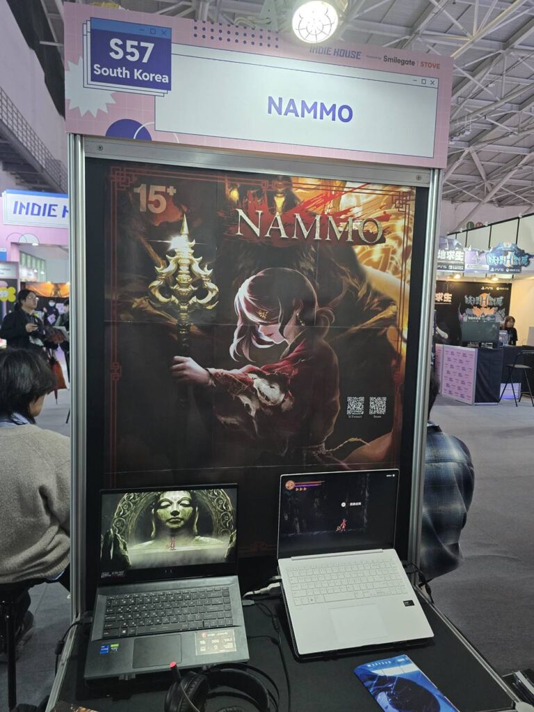 Nammo ผลงานเกมอินดี้จาก Guild Studio แห่งเกาหลีใต้ โดยตัวเกมจะเป็นแอ็กชันอาร์พีจีที่มีสไตล์งานภาพแบบ 2D พิกเซล และรูปแบบการเล่นในลักษณะเมทรอยด์วาเนียครับ ซึ่งจากที่ได้ลองเล่นมาเบื้องต้น ตัวเกมค่อนข้างให้ความรู้สึกคล้าย ๆ Blasphemous ในแง่อาร์ตสไตล์ที่จะเน้นนำเสนอศิลปวัฒนธรรมแบบเกาหลีและศาสนาพุทธ (สอดคล้องกับชื่อเกมและชื่อตัวเอกที่ก็คือ “นะโม”) แต่ก็จะมีโลกอีกด้านซึ่งก็นำเสนอในรูปแบบที่ดูน่ากลัวและบิดเบี้ยว